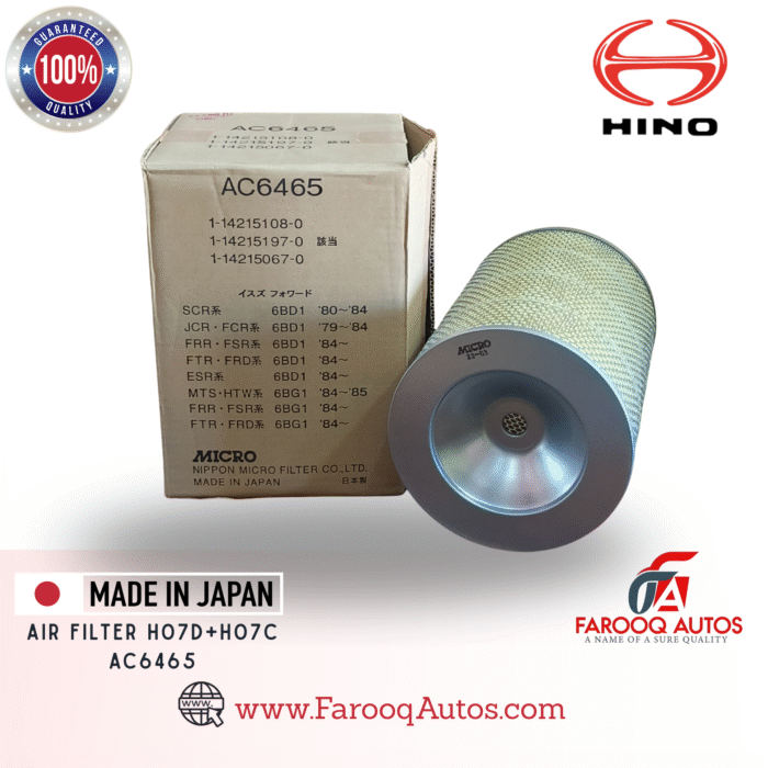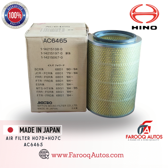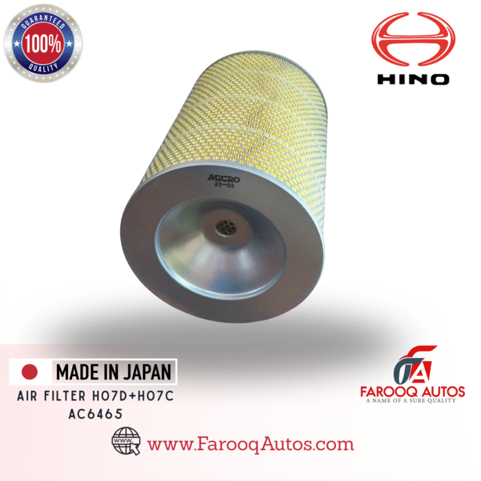 Keep your Hino trucks and buses performing at their best with the Hino Genuine Air Filter 17801-2280 (AC6465), designed for HO7D, HO7CT, FM, and Ranger engines. Manufactured in Japan by Micro, this high-quality filter ensures maximum airflow, reliable engine protection, and long-lasting performance in demanding road and weather conditions.