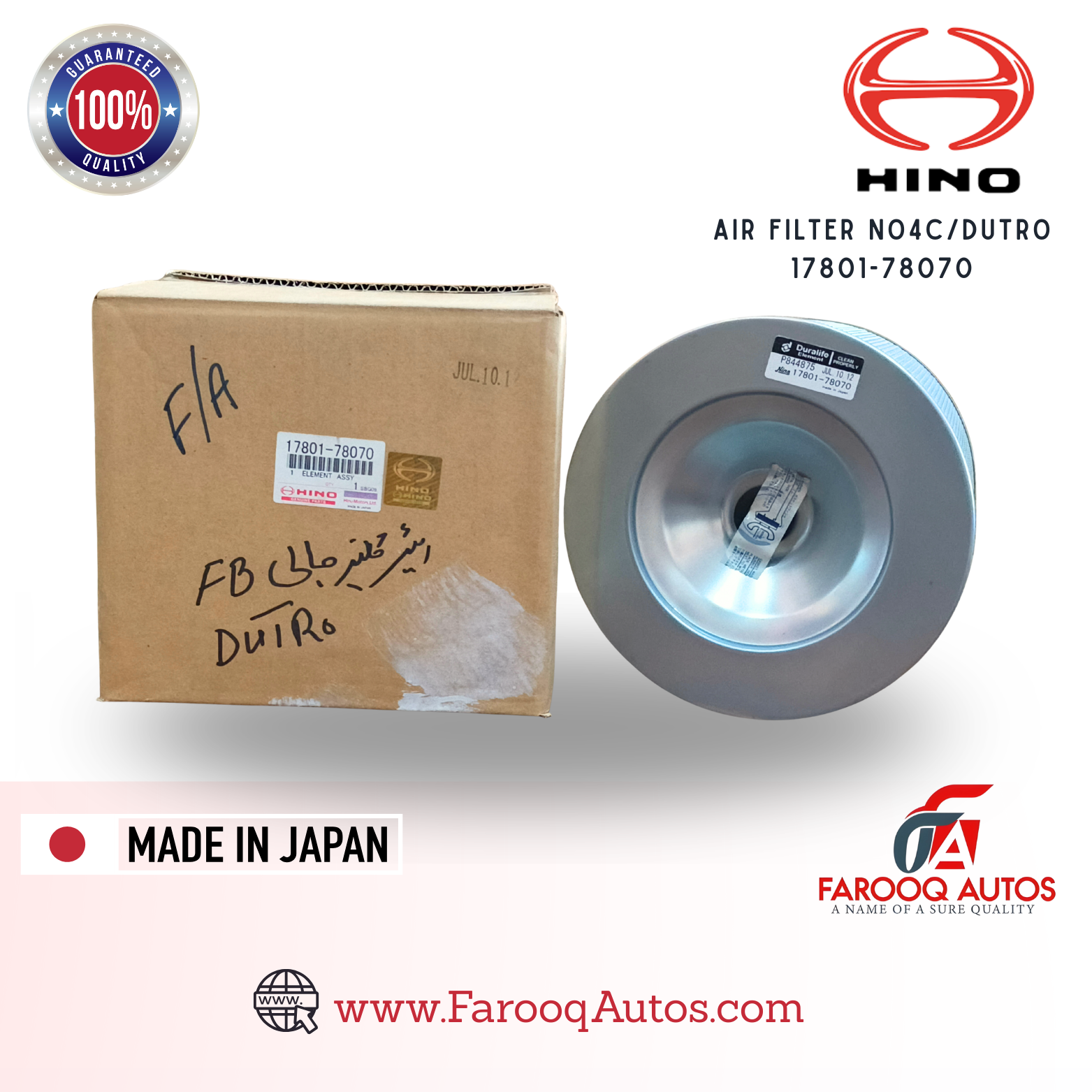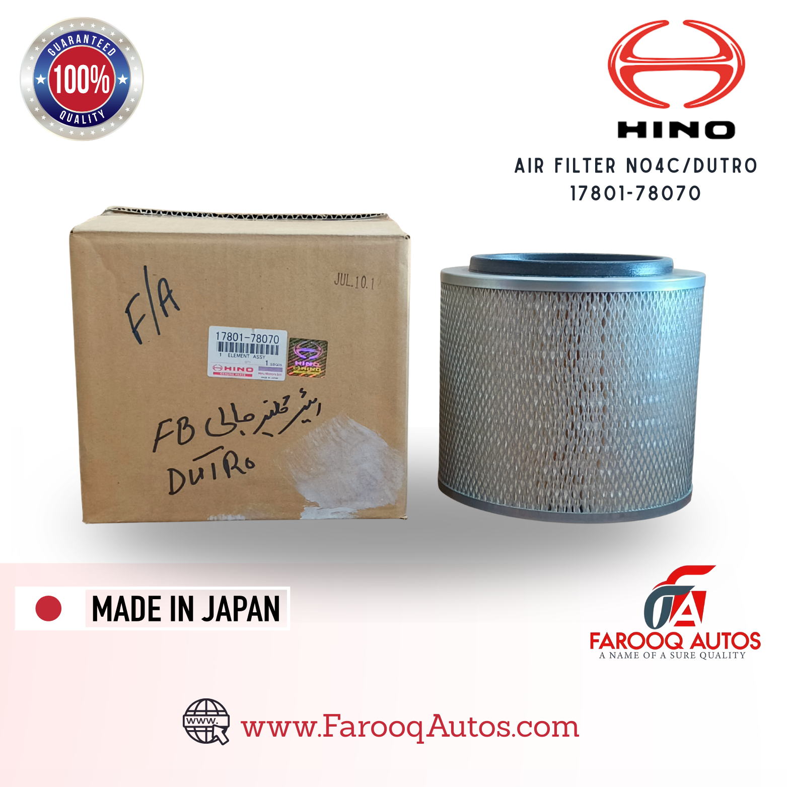 Keep your engine running clean and efficiently with this genuine Hino air filter, designed specifically for Hino Dutro trucks equipped with the N04C engine. Manufactured in Japan to the highest OEM standards, this air filter (Part No. 17801-78070) delivers superior filtration and long-lasting performance.
