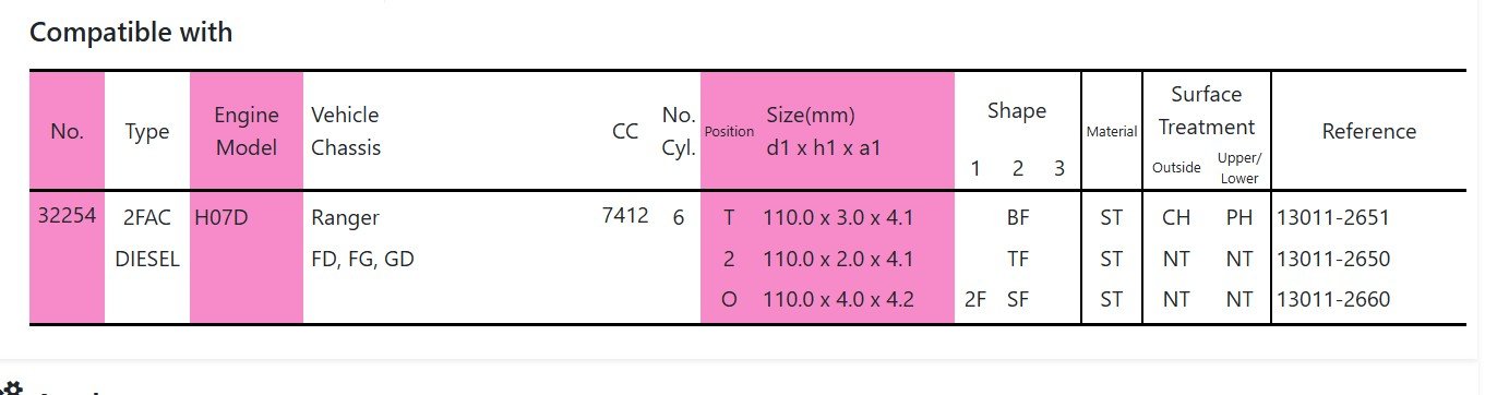 PISTON RING HINO HO7D 110MM (32254) TP MADE IN JAPAN