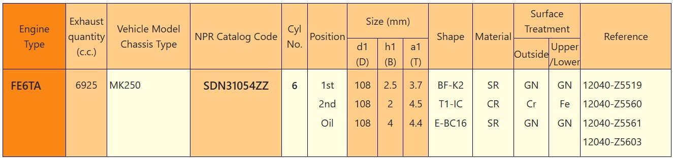 PISTON RINGS UD FE6TA/PKD411 12-V (SDN31054ZZ) NPR JAPAN